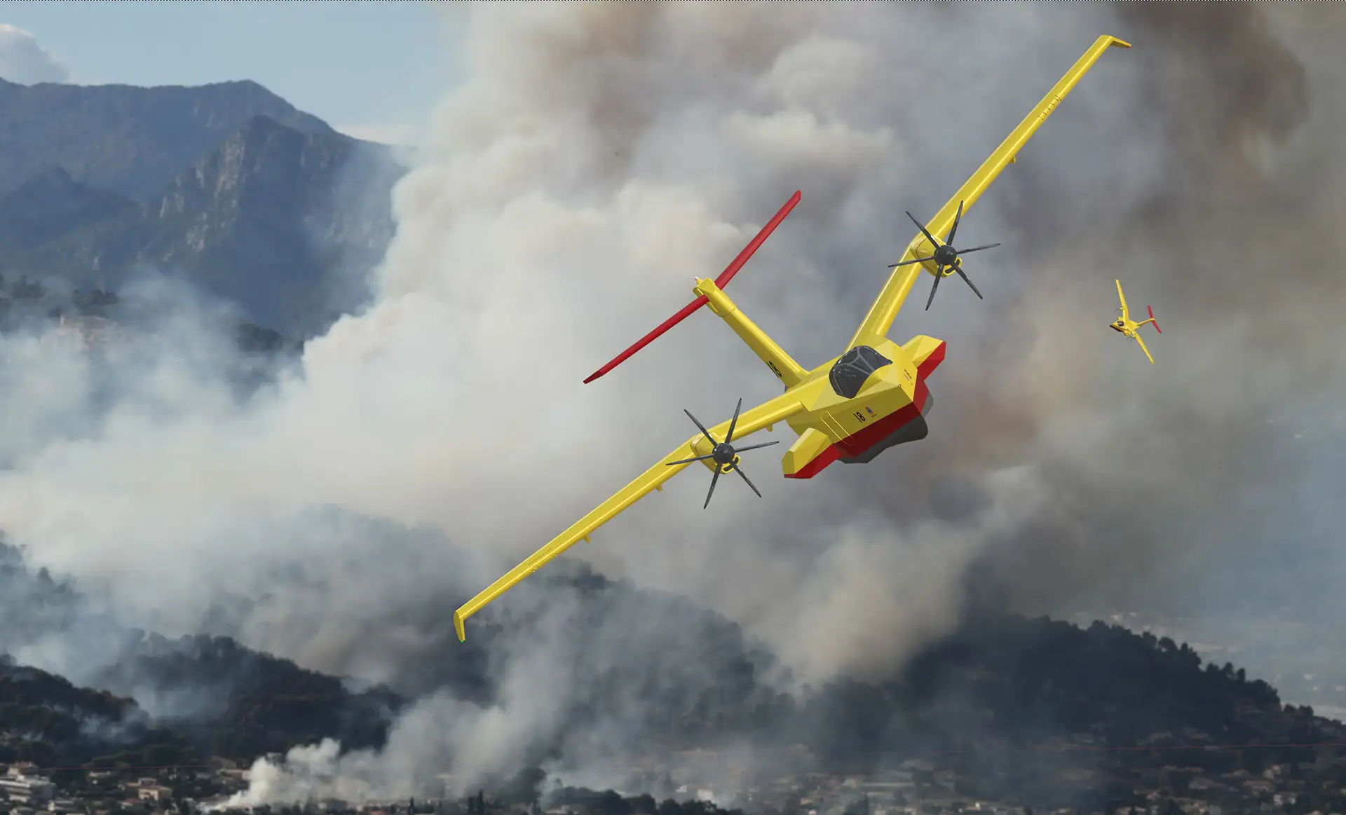 Evolved from the Canadair CL-215, the CL-415 is a twin-turboprop amphibian, able to gather a full water load in a reported 12 seconds via two (amazingly small) scoops, facilitating a fast cycle of collection/drop, even with relatively shallow constrained available stretches of water. In considering the demands of this mission, and distilling into a set of notional core technical requirements for a successor, the resulting list would be extremely challenging, from aero performance/Handling Qualities (HQ) (slow/manoeuvre) to mission performance (payload, time-on-station, airfield performance), structural (transmitted loads, weight and balance changes) to configuration/avionic systems (transparencies/visibility, navigation/terrain avoidance). That the CL-415 fulfils all of these requirements is testament to its success; however, many of its distinguishing features are an inevitable design trade-off, which brings limitations. For example, a key characteristic is its high-mounted straight wing - festooned with winglets, fences and outboard floats and featuring a large area, moderate aspect ratio, with a high thickness to chord (t/c) ratio. With top-mounted engines, the combination provides for structural strength, excellent low-speed manoeuvrability and gentle stall behaviour. For precise water bombing at ultra-low-level in rough terrain, these are surely Key User Requirements (KURs)?