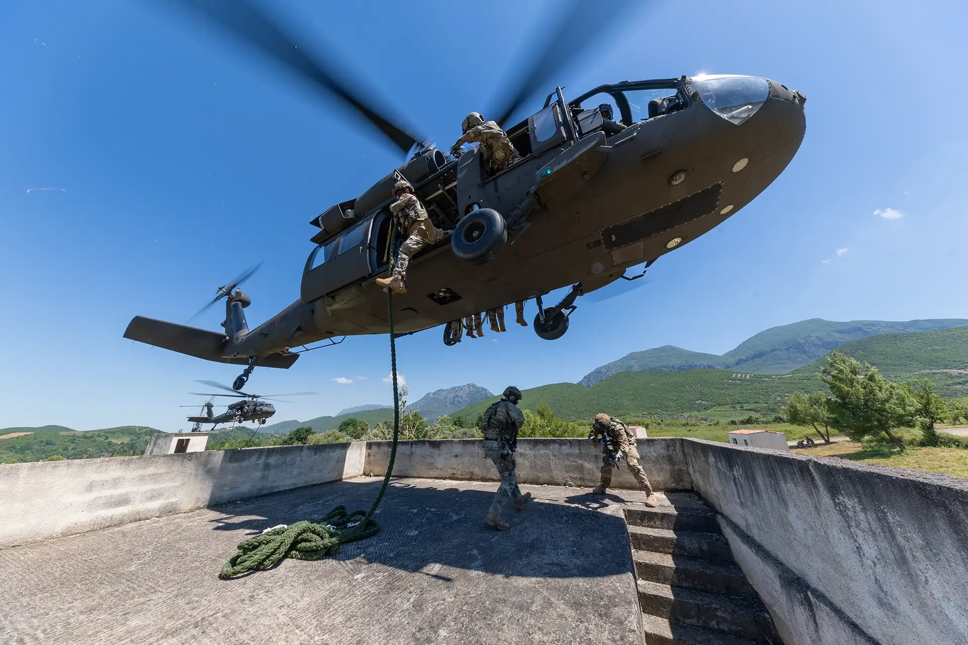 Rohrbeck added that despite the cultural differences, the training has progressed well, and Albanian Special Forces members have been introduced to the Black Hawk while assisting with training the aircrews in SF support missions such as fast-roping. “The aircrews have done really well at the tasks we’ve trained them in, especially with Jaymen in the back of the cabin. If they spoke better English, you couldn’t tell their performance apart from a fairly experienced US Army crew, and the fast-roping went very well, with no one hurt and no major incidents at all,” he reported.