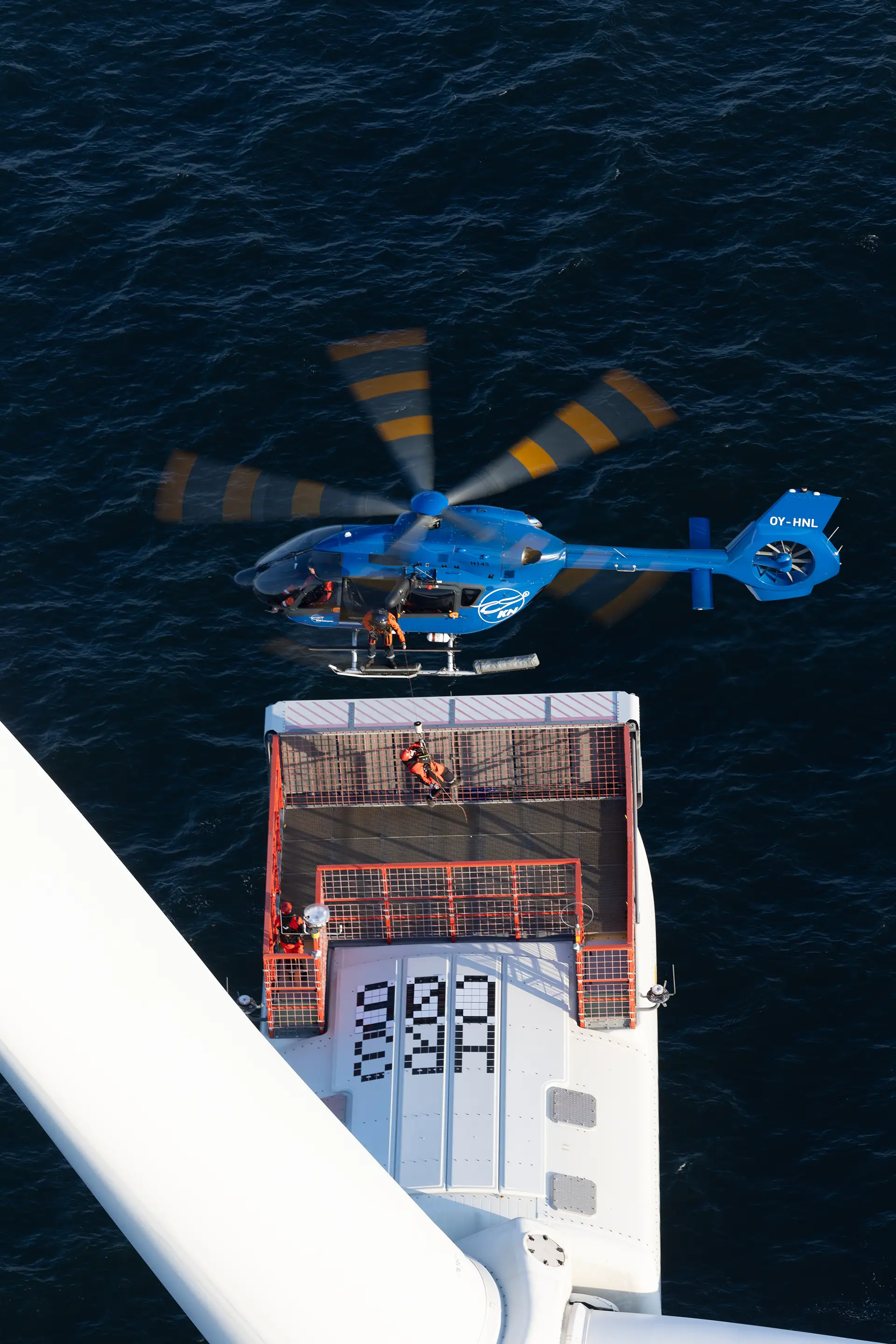 Windfarms are a major feature of the European land and seascapes, with an ever-increasing number of the massive turbines appearing both on and offshore, some with rotor diameters of over 230 meters. Installing, maintaining and servicing the structures and accompanying substations demands efficiency, versatility and adaptability; characteristics that ideally suit the capabilities of helicopters.