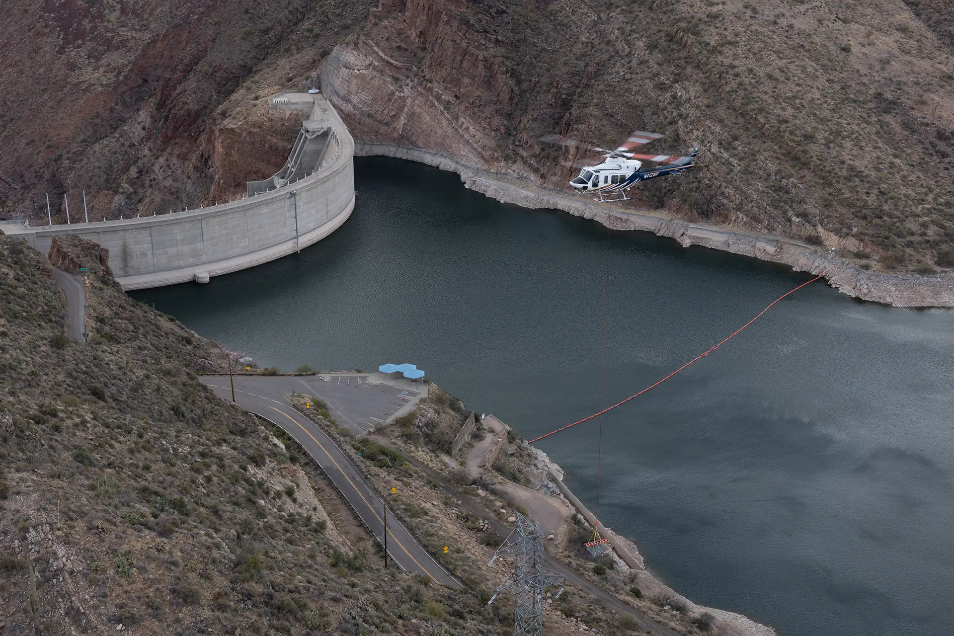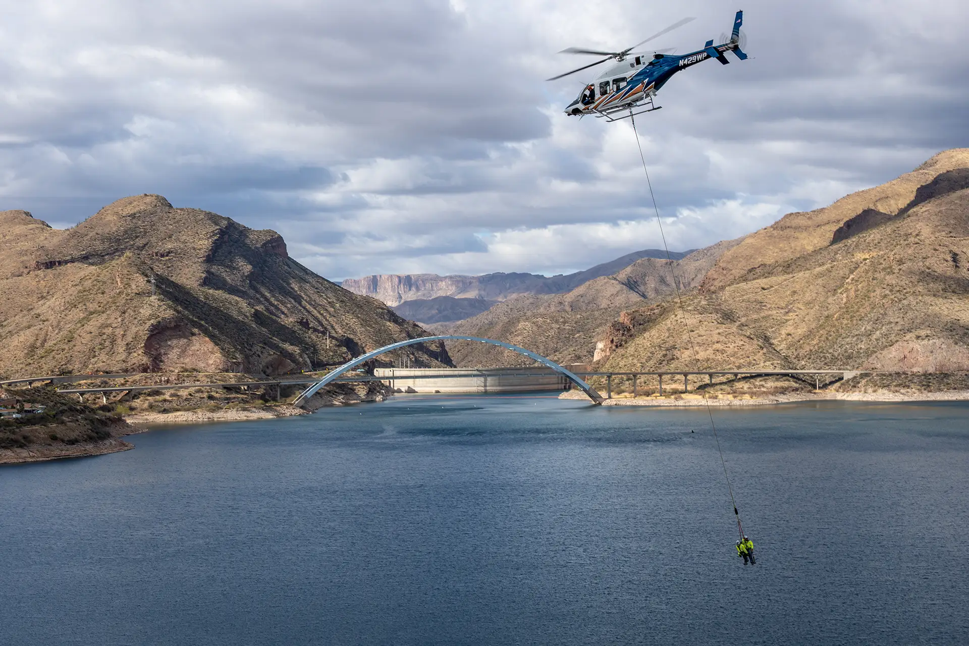 The majority of SRP’s service territory spans from the Phoenix metro area to the north and east of Phoenix. Flight time via helicopter to reach some of these areas can take hours, and the flight department’s workload is highly varied. The work involves a significant amount of HEC, ranging from external hoist operations to working with a 75-foot short-haul line. The helicopters are also called upon to perform other external loads, crew hauls, river and economic development tours for government officials and special-interest groups, snow and water surveys, eagle surveys, line patrols, transfers of personnel and equipment to inaccessible communications sites, LiDAR mapping or hydrological surveys for USGS. The crew hauls to remote plants save around 300,000 miles of driving every year and enable the crews to work an 11- or 12-hour shift and still be home every night without the need to drive for almost two hours one way. They also eliminate costs such as hotel stays, if there are hotels nearby, and daily per diem. “The crew’s morale is higher, the powerplant and dam maintenance crews are more productive with less time spent on the road, the repairs are made faster and above all it’s safer reducing the chances of vehicular accidents,” Wegele remarked.