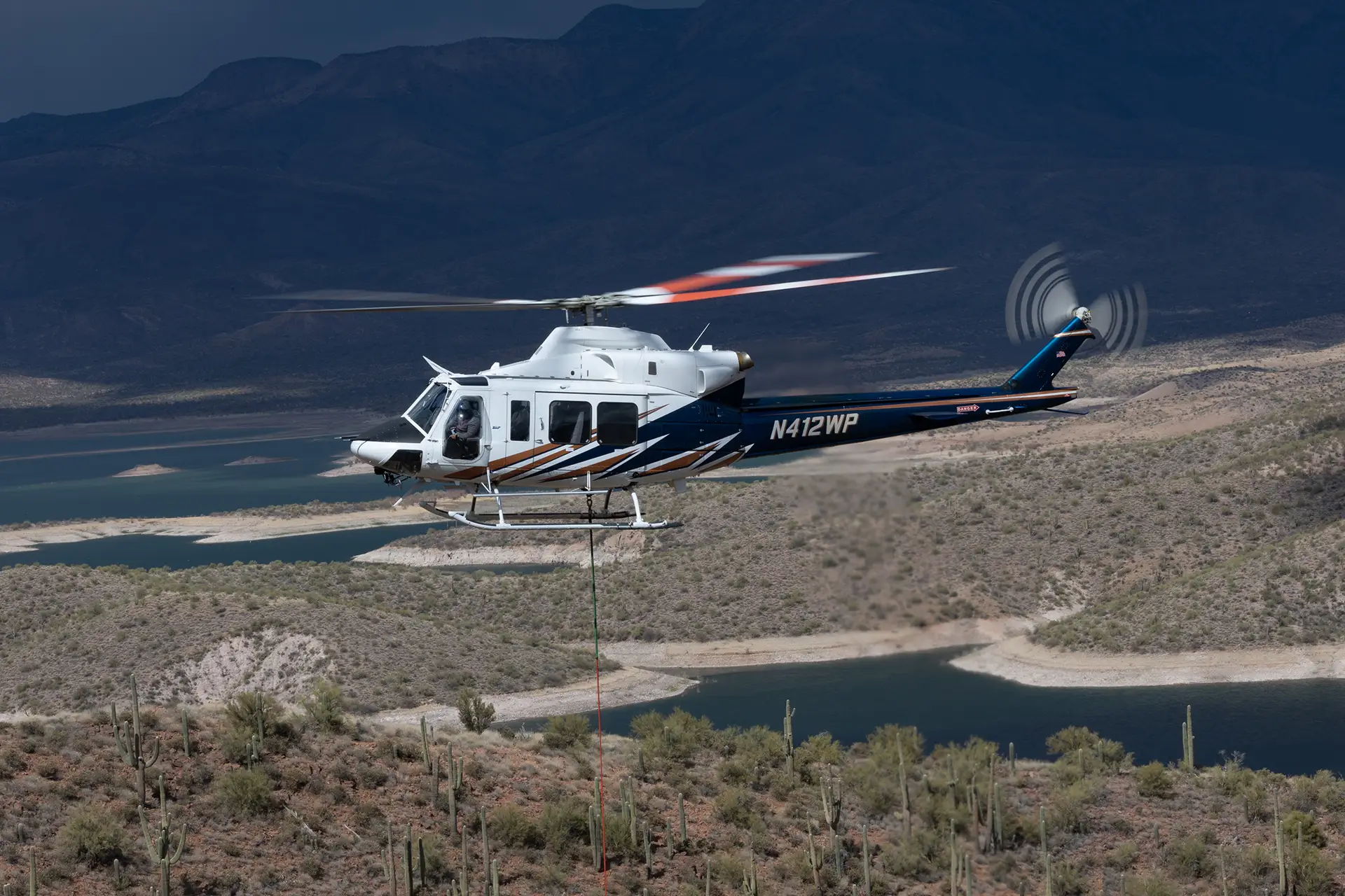 The decision to acquire a new 412EPX was based on its superior lift capability compared to other versions of the 412, its new FADEC engines, and a glass cockpit that shares significant avionics commonality with the 429. Some operational procedures are very similar, there are many interchangeable parts, and the similarities between the three models which reduce the number of differences pilots experience when swapping between airframes. “When we do crew changes out to the remote power plants, and when we used the 212, we’d get numerous noise complaints despite our mitigation efforts. Although the 212 is a proven reliable machine, it’s slower than the 412 and has less fuel capacity, requiring more frequent refuelling stops. The 412 has proven to be much quicker and quieter,” explained Mark Wegele. He added, despite SRP’s decades of accident-free hoisting, that the FAA’s new stance on external hoist operations in a 212 could no longer be performed without significant costly upgrades. This was one driving factor to purchase the 412EPX. “We were pretty much pushed to buy another aircraft if we wanted to continue using an external hoist in our operation. Plus we have enough work to justify the additional aircraft with all the growth in the Phoenix area- so much growth that we couldn’t meet internal demands at times.”