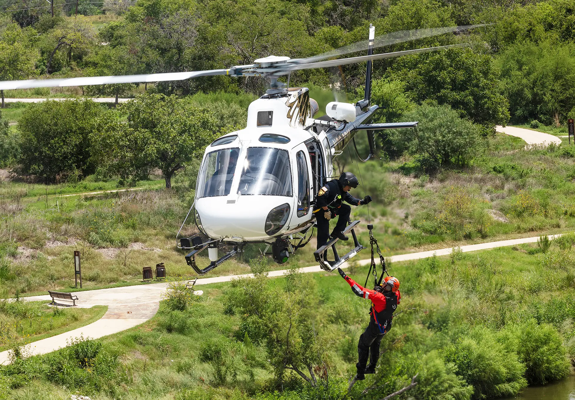 The San Antonio Police Helicopter Detail, known as Blue Eagle, has responsibilities that extend beyond only policing San Antonio city. Its varied missions require a range of capabilities and to meet its needs, the unit is re-equipping its fleet to field a single type; the Airbus H125/AS350-B3.