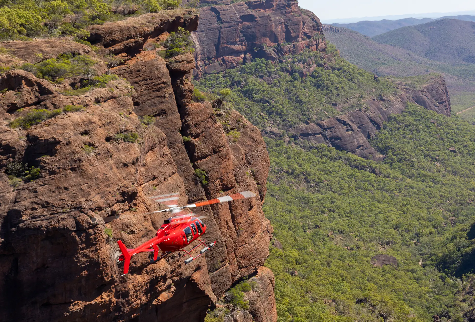 Helicopter transfers from Cairns to Mount Mulligan take about 30 minutes, flying over diverse and austere landscapes that can only be accessed by air. Although being a far cry from the salt spray and humidity of the reefs and rainforest, the 407s show they are equally at home in the dry, dusty heat of the Outback - whether performing direct passenger transfers or supporting commercial operations.