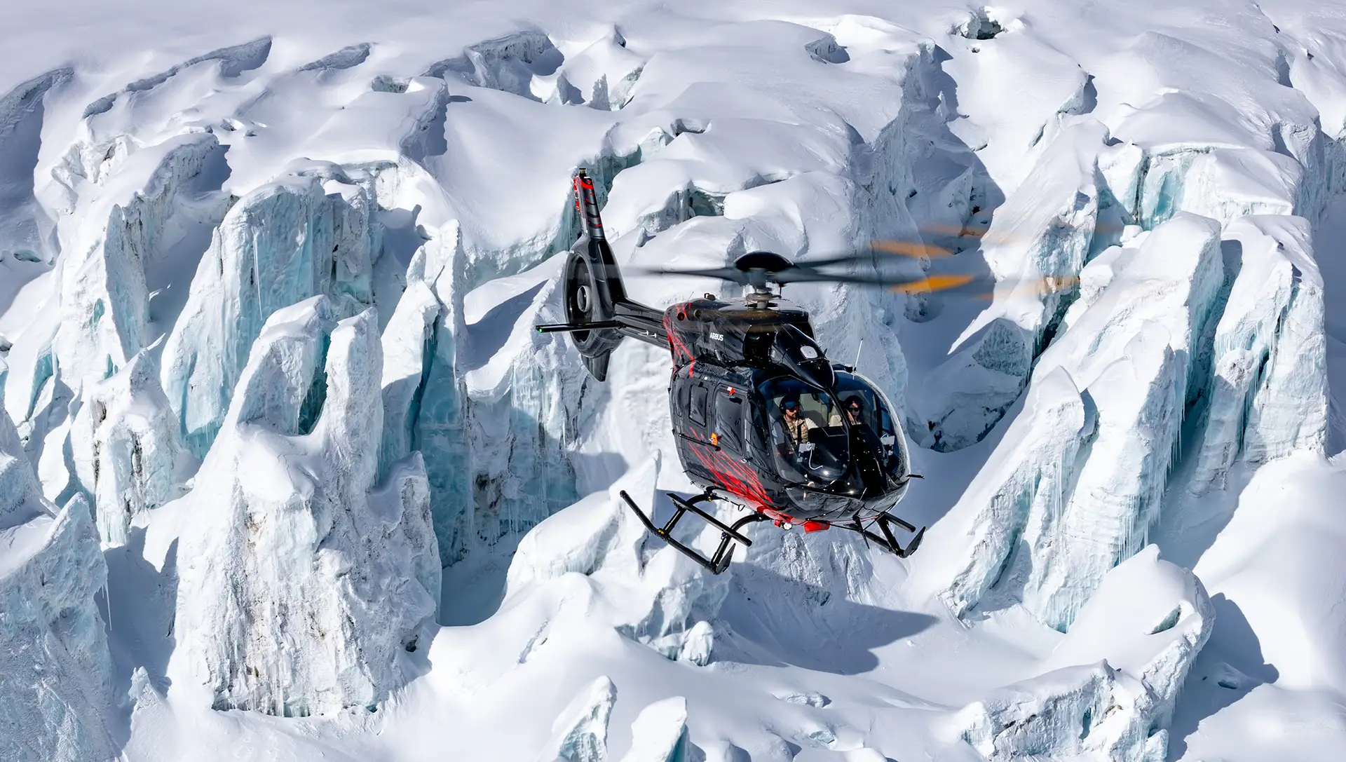 The H145-D3 is considerably more expensive to purchase and to operate than a B3 AS350, so the new company’s focus is on the very top end of the heli-tourism, skiing and charter markets. The helicopter presents magnificently, resplendent in a gloss-black paint finish, emblazoned with a diagonal contrast pattern in bright red and silver-grey. Rossier commented that the idea for the paint scheme came from ideas originally sketched out by the partner’s children and then fine-tuned by a designer. The Mecaer-designed interior is fitted out with plush cream leather upholstery and high-grade carpeting, and Bluetooth headsets are provided for all eight passenger seats.