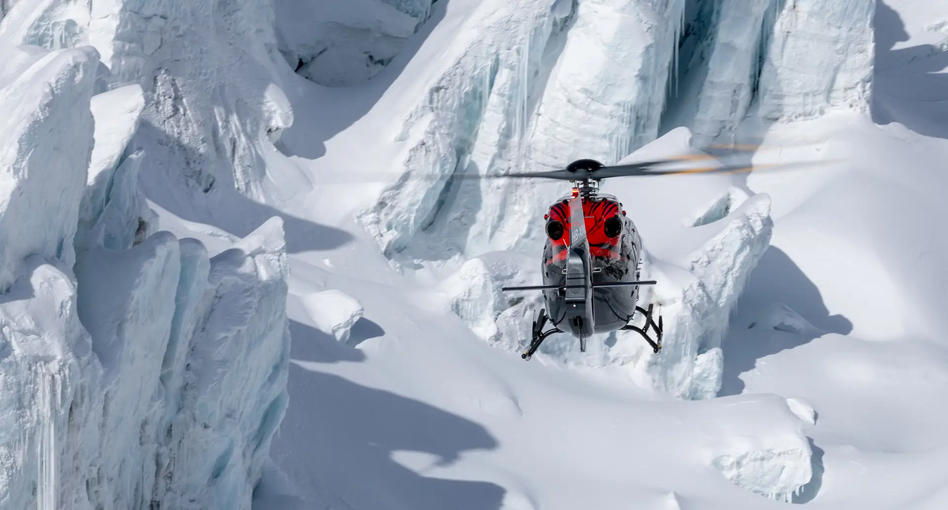 The H145-D3 is considerably more expensive to purchase and to operate than a B3 AS350, so the new company’s focus is on the very top end of the heli-tourism, skiing and charter markets. The helicopter presents magnificently, resplendent in a gloss-black paint finish, emblazoned with a diagonal contrast pattern in bright red and silver-grey. Rossier commented that the idea for the paint scheme came from ideas originally sketched out by the partner’s children and then fine-tuned by a designer. The Mecaer-designed interior is fitted out with plush cream leather upholstery and high-grade carpeting, and Bluetooth headsets are provided for all eight passenger seats.