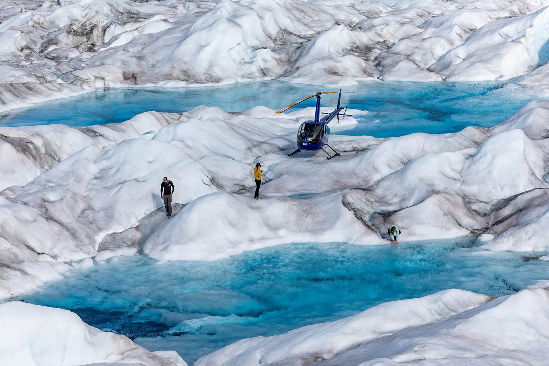 explore and see the blue melt-pools. Of course, if the helicopter is landing and shutting down several times during a tour, it creates a