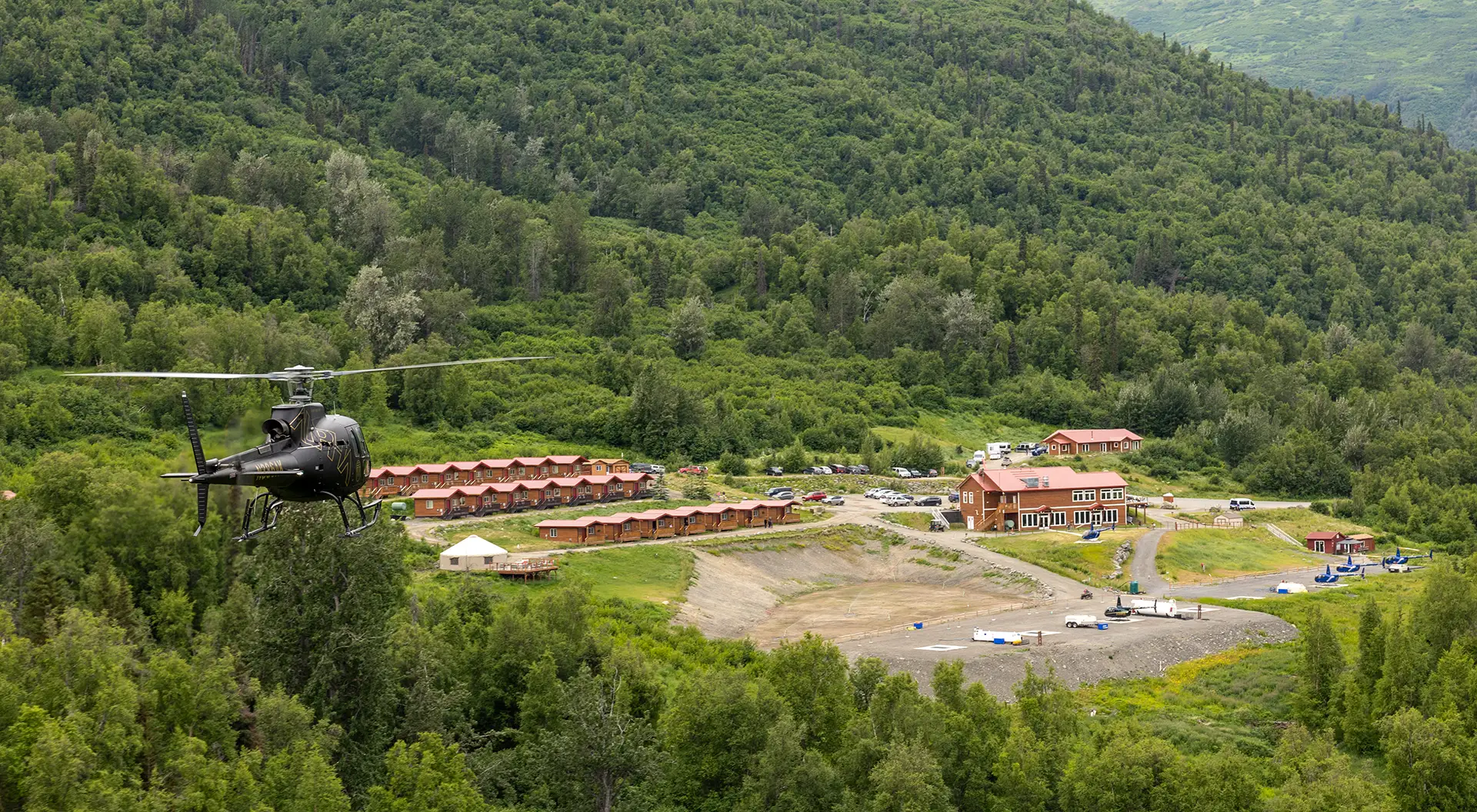 by the parent company and trading as a separate entity from the helicopter operations. The lodge is situated in the Knik River valley, with
